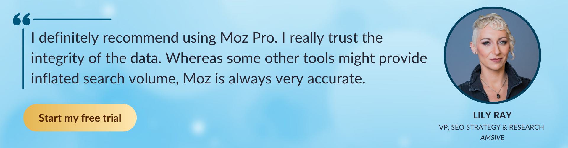 Moz Pro helps you achieve your search goals, whether you need better keywords, quality links, technical SEO help, or all of the above and more. Try it free and see why so many marketers trust our SEO tools!