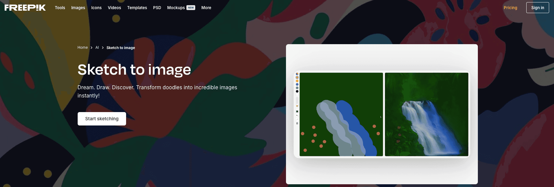 FreePik turns hand-drawn sketches into high-quality images, helping content creators, designers, and SEOs create visuals faster.