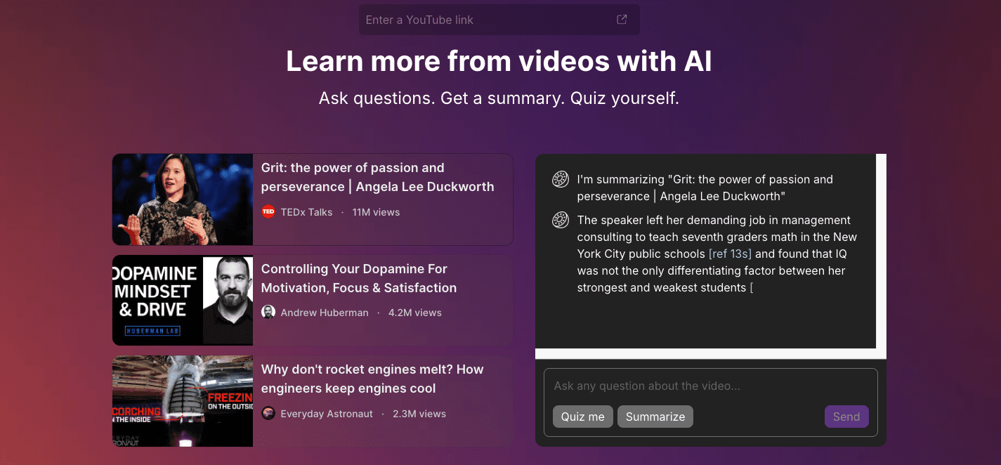 - Content planning: The tool’s summaries also serve as a foundation for creating blog posts or structured notes, saving time when repurposing content for educational purposes.