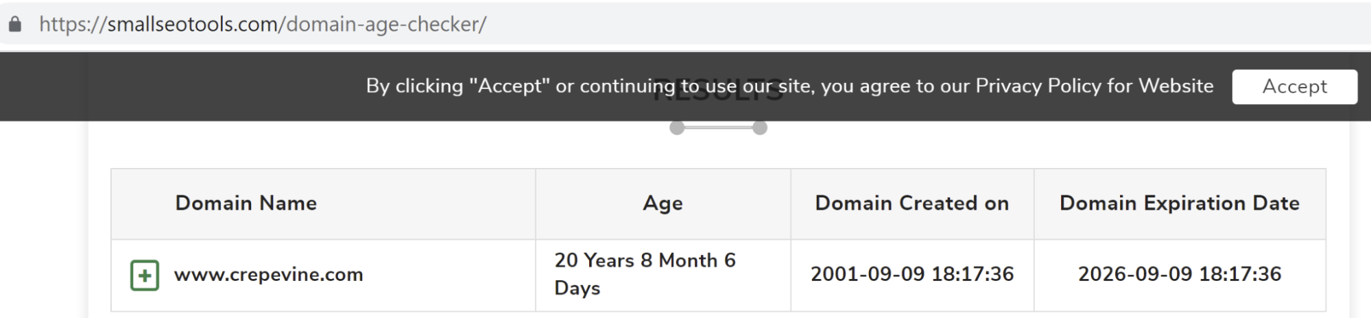 There are many free tools like this one that will let you quickly look up the age of your domain and that of your competitor. Google reps have repeatedly stated that domain age is not a ranking factor, but I look at it anyway, to let me know how long a competitor has had to work on their website and build its authority. While it’s absolutely correct that a brand new website can outrank an old one with a great campaign, mark a win for the older domain in this row of your sheet, regardless of ranking.