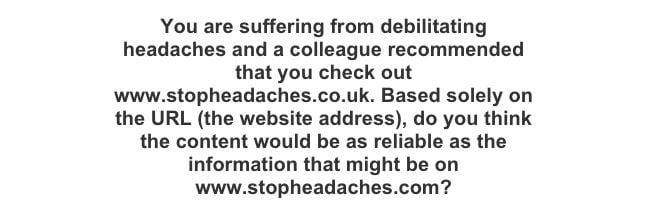 In the US, while 39% said that both websites would offer reliable shipping, 42% still said that Best Buy would be the better option. Australians may have been confused by the incorrect Target website, since 61% said both websites would have reliable shipping, but 34% chose Big W. Even marketers didn't seem oblivious to domain names with only 34% choosing the equally reliable option, and 49% choosing Best Buy. The data in this question is a bit inconclusive, but we can definitively say that while a large portion of users are blind to domain names, however, when selling online it would be best to use a familiar domain extension.