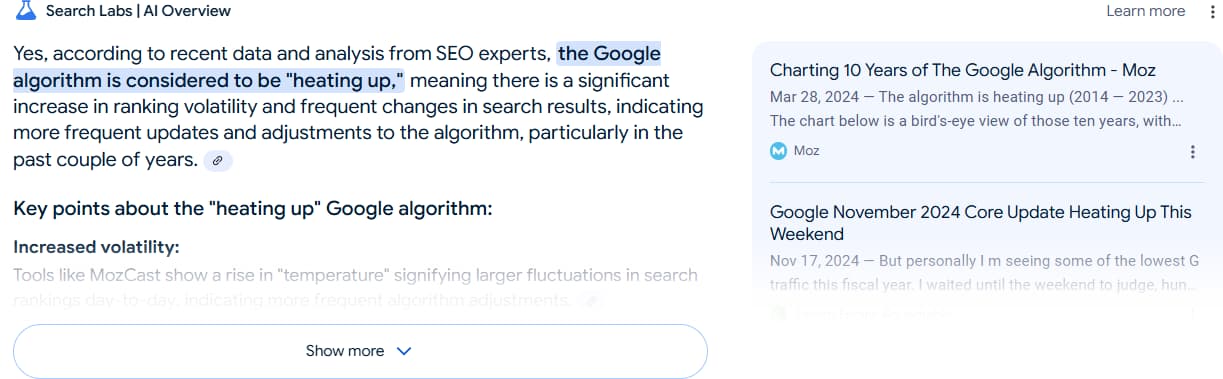 It’s likely that some of the “heat” we saw across 2023 was a result of opening Pandora’s box of machine-generated content. It’s also possible that the eight core updates in 2023–2034 were, at least in part, an attempt to close that box. That push and pull would cause ranking fluctuations in both directions. This is a plausible explanation, but it’s difficult to prove.