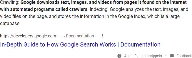 Google has evolved a great deal as an “answer engine,” including building out the Knowledge Graph and surfacing web results as direct answers known as Featured Snippets. If, for example, you search for “How does Google search work?”, you might get back a Featured Snippet (essentially, an attributed answer) like this: