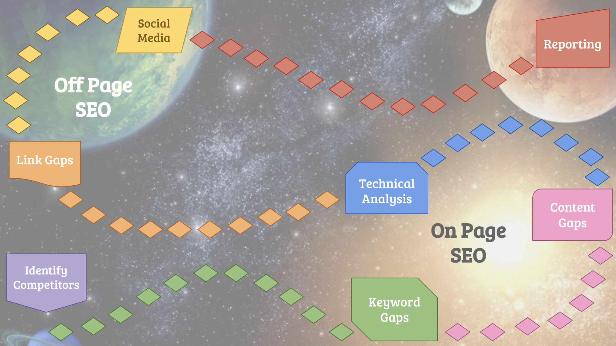 You will have just learned about on-page strategy, so now it’s time to move into the off-page portion of our competitive analysis framework. In this portion of the course, we’ll focus in on off-site activities such as link profile research, social media analysis, and more – and don't forget about reporting on all of the above!