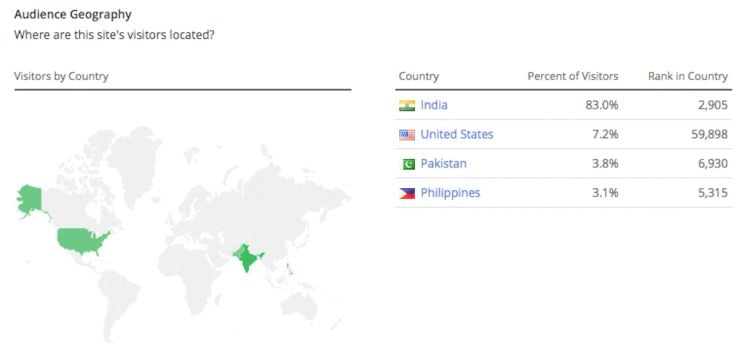 Instantly, you can see that between the two sites, Yelp is more popular in the US, while the other directory is more popular in India. You can scroll down further through the profile to see what countries a local business directory gets the majority of their traffic from to determine if they are getting traffic from your target customer base.