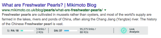 This sort of information is offered up by big retailers who have created content that targets the intention of searchers. Mikimoto drives us to their blog post all about where freshwater pearls come from.