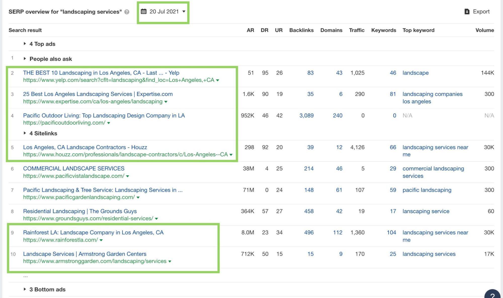 For it to be a fair assessment, I’d have to select keywords completely at random and then see how their SERPS differ from 2021 to 2022. The problem with Ahrefs’ historical SERP data, however, is that it plays poorly with local search intent.