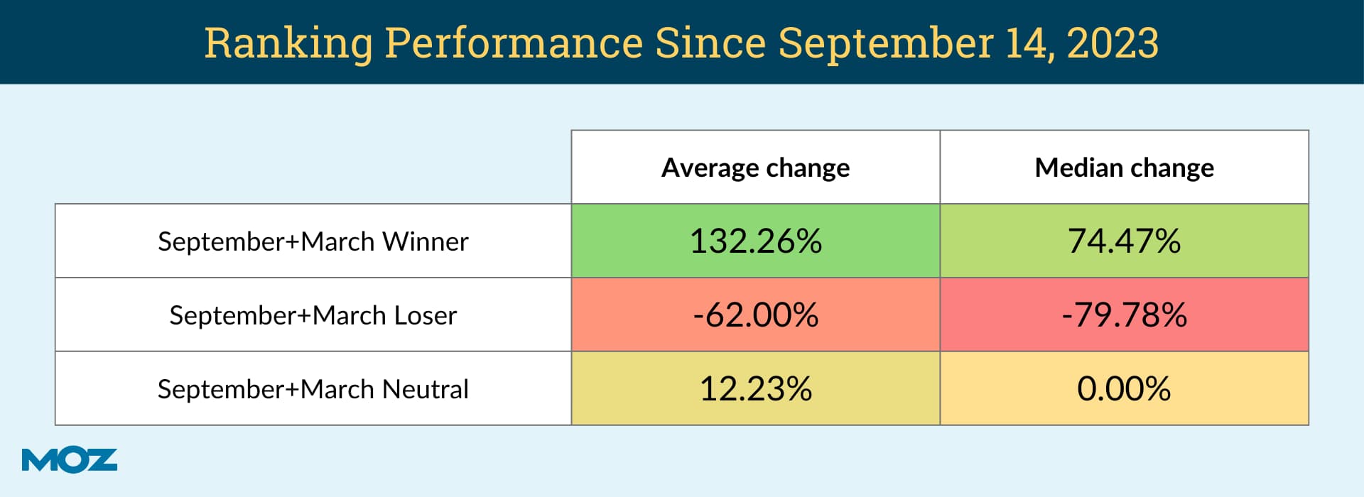 That picture of similarity between the profile of neutral and winning sites also makes me think the HCU was likely a demotion or algorithmic penalty rather than a potentially positive factor.