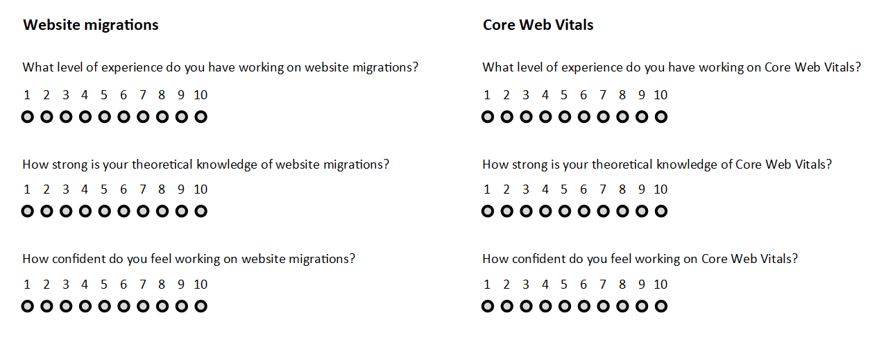 It can be tough to ask the right questions of candidates who are at a different stage of their SEO career than you. If you’ve been in the industry for several years, it might be difficult to identify what someone of their experience should know and be able to achieve. Equally, if you’re not an SEO yourself, but involved in hiring one, you may not know enough about the discipline to really gauge the extent of your interviewee’s knowledge. It’s important to identify the depth of skills you would expect someone at the level you’re hiring for to have. One way of doing this is by looking at the types of problems you would want that person to solve. What skills would need to be present for them to do that? Then look at weighting those skills. Which are absolutely necessary for getting the job done and which would aid to a degree.