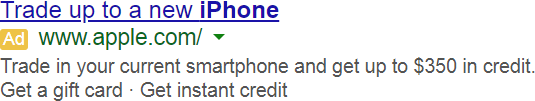 Does this latest change do too much to blend ads and organic results? If we just go back one iteration, it doesn't seem like a huge shift. The most recent version, shown below, also matched the color of the "Ad" marker to the display URL, substituting a thin rounded rectangle for the newer, bolded text ...