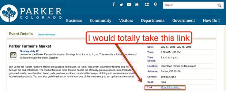 Find a cause that's dear to your heart and sponsor the organization. Many causes list sponsor logos and links to their websites on their local landing pages. If you host your own event, you can usually get listed on the town's website (if it's a community-approved event).