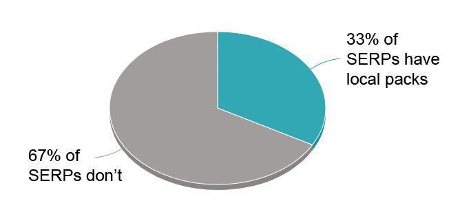 The second is the sheer volume of searches for which Google shows local packs and localized organic results. We’re fortunate to have some original data today from Moz’s own Dr. Peter J. Meyers. Pete ran 10,000 keywords through MozCast, half of which were localized to specific cities and half of which weren’t, and found that about one-third returned local pack results: