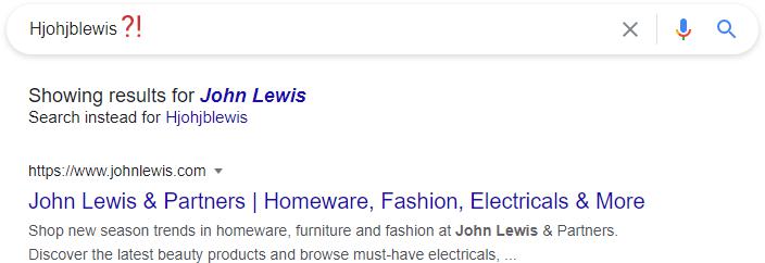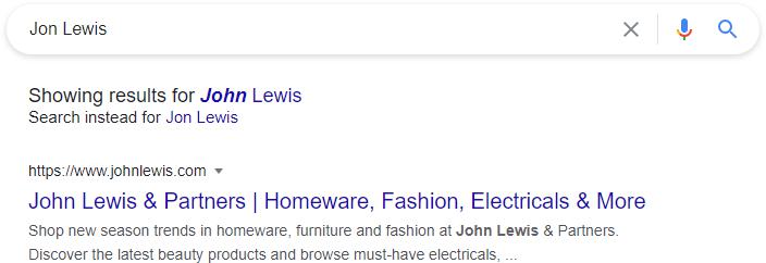 Back in 2019, I did a keyword research case study at SearchLove London on UK mega-retailer, John Lewis. In my research, I was surprised to see how many searches Google was automatically redirecting. There’s the obvious, like Google assuming that people who searched for “Jon Lewis” in the UK probably meant “John Lewis” (sorry, Jon):