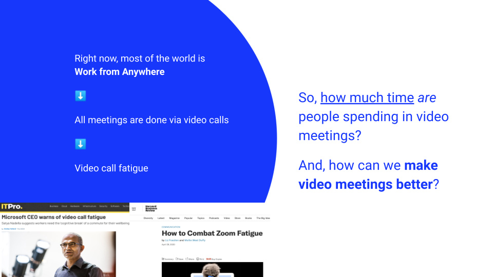 I then had a second brainstorm on potential topics for the data-backed report, and my mind kept going back to an idea that I was very passionate about: the recent growth in video conferencing. I built my project around that idea, and after joining Dialpad, I was able to turn my pitch into reality by publishing the State of Video Conferencing report.