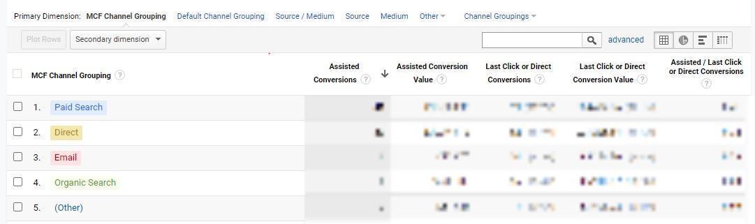 Assisted conversion value: if you’ve attributed a goal value, this column will show you its value.