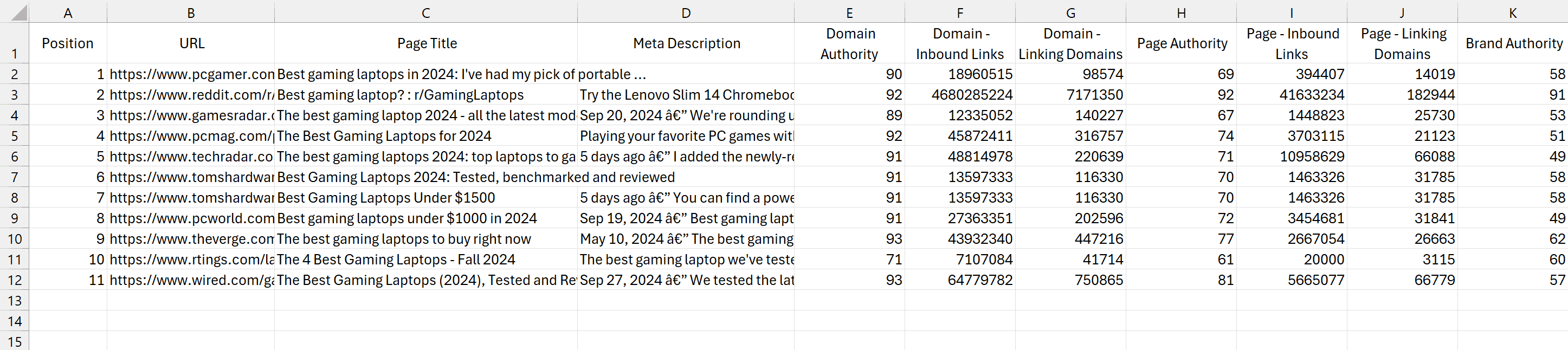 The handy export function lets you download a snapshot of the data for future use, so you don't have to scramble and remember which URLs you saw on your competitive analysis expedition.