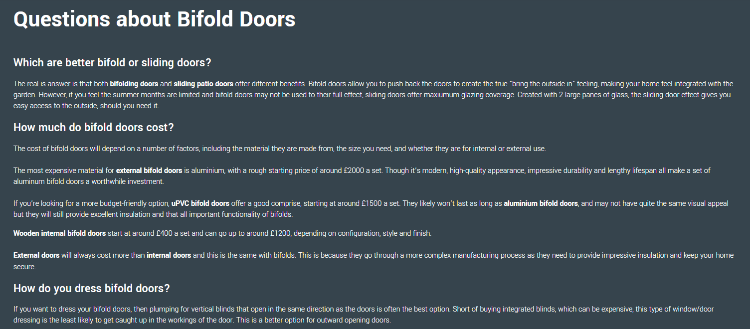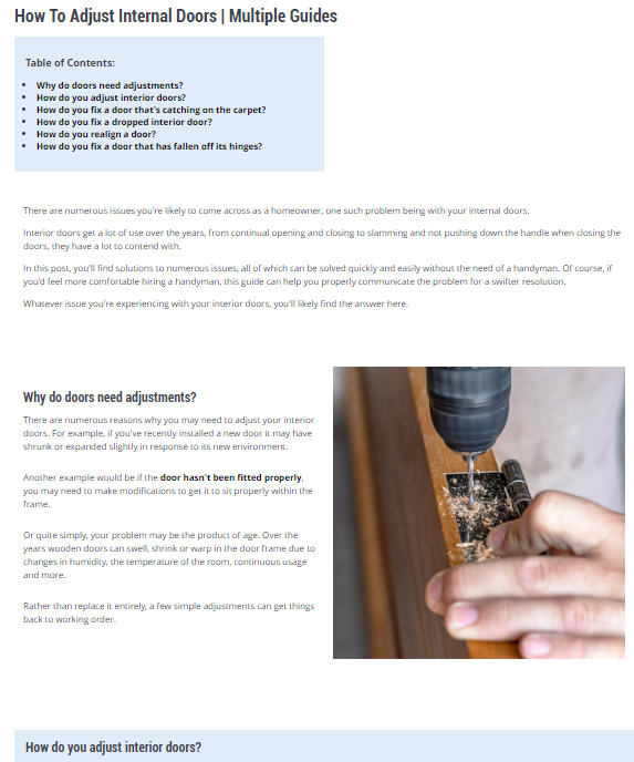 Working with a lot of home improvement and DIY clients, there’s plenty of scope in this sector for creating detailed how-to and informational guides. This type of content offers an abundance of helpful information to potential customers, and it helps you to rank too.