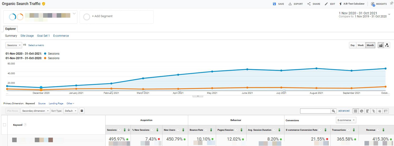 Increased non-blog organic sessions: +495.97%