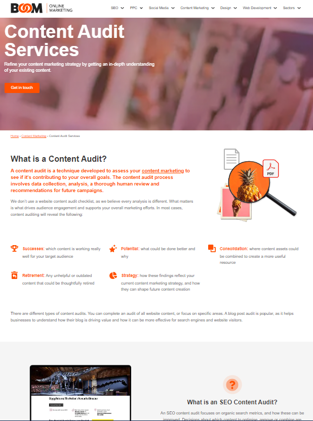 On the Boom Online website, we structure our content with clear formatting to make text-heavy service pages easier to read: