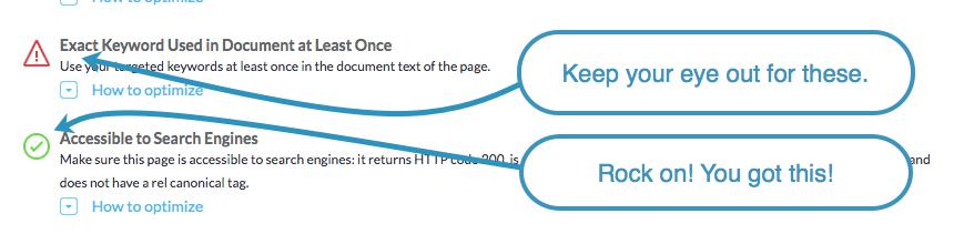 If we make it part-way around, it’s time to look at the suggestions to see how you can improve your on-page optimization.