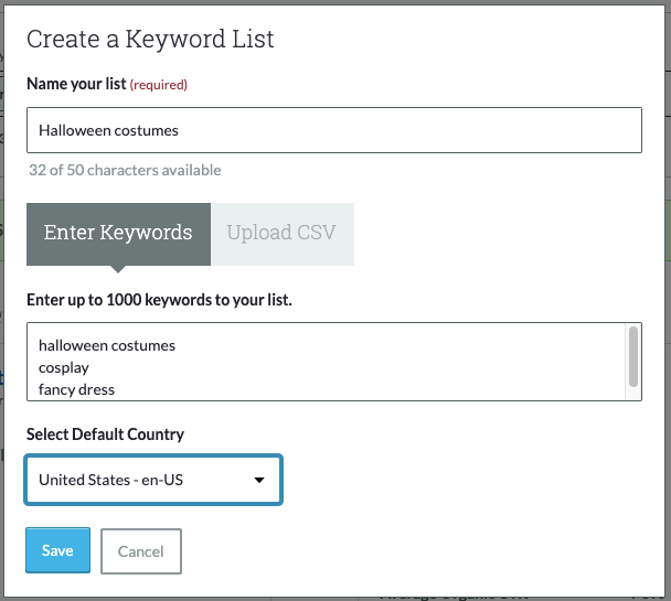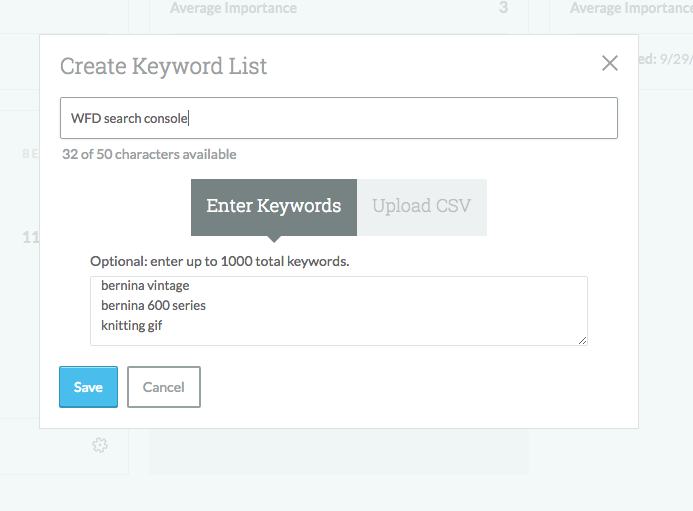 Hit "Create or upload a new list" and choose "Enter Keywords" to pop those straight in there, bish-bash-bosh.