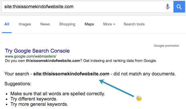 If you’re seeing the above, you won’t be able to rank because your site isn’t indexed. It’s got to be indexed before it can rank, and it’s got to be crawled before it can be indexed. Trying to rank without being indexed is like trying to bake a cake without turning on the oven.