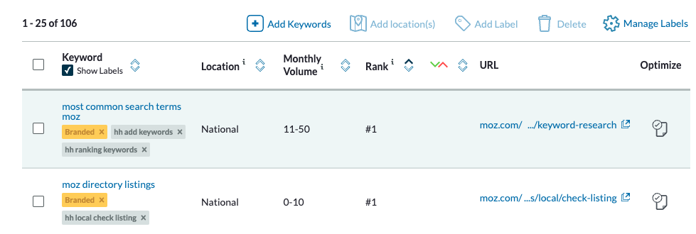 Remember, you’ll need a Moz Pro subscription to create a keyword list.