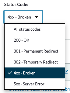Find and plug any holes quick-smart. Link Explorer has a handy tab just for this job. From “Links” click on “Top Pages” and filter by Status Code.