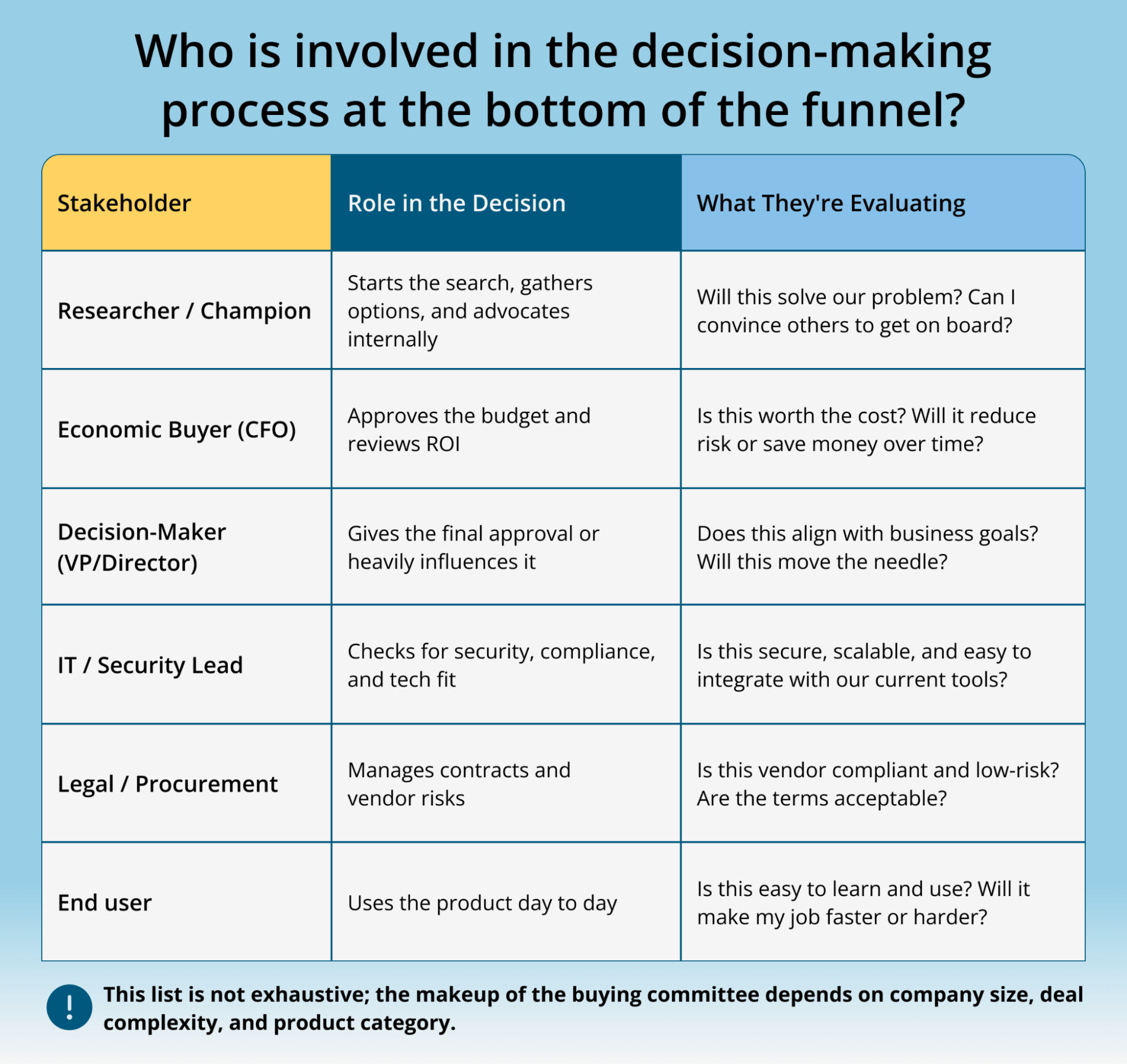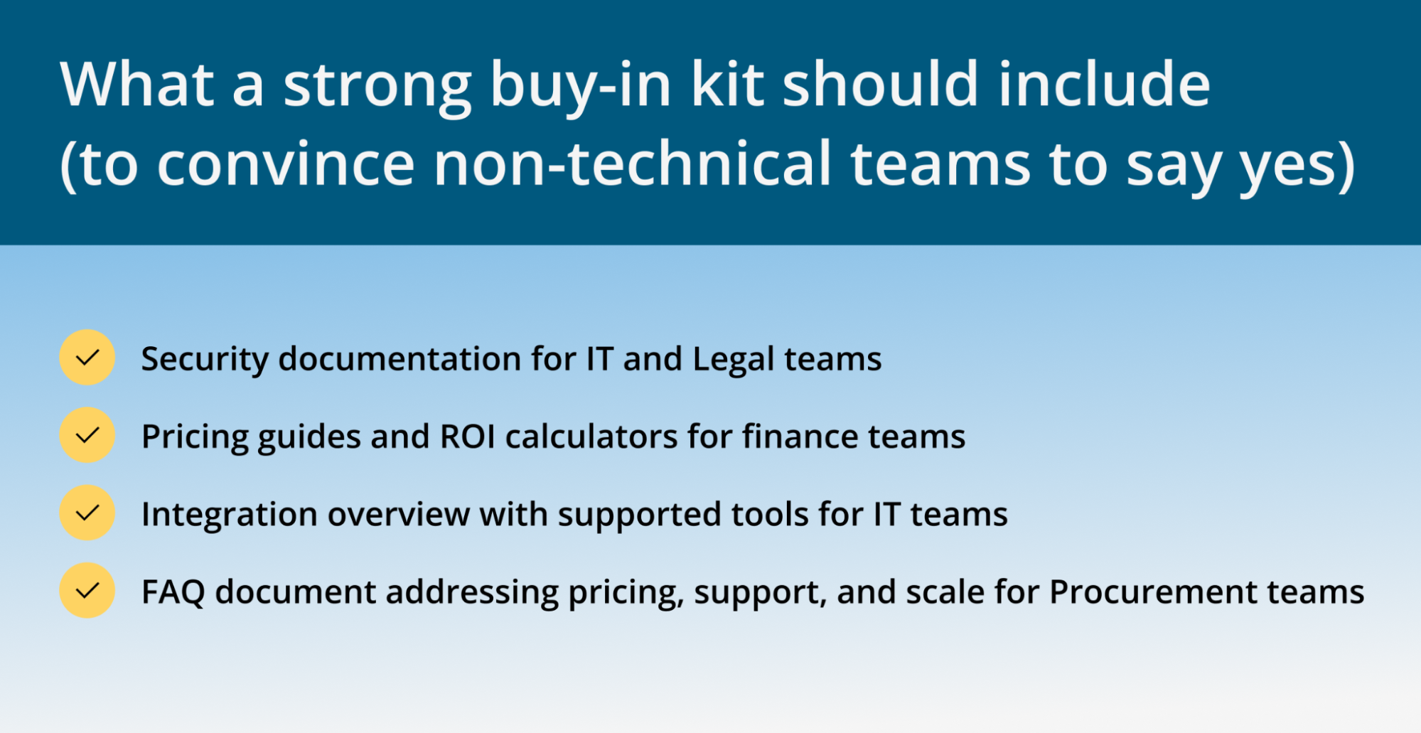 Even if your ideal buyer is convinced, they still need approval from finance, IT, or legal teams.