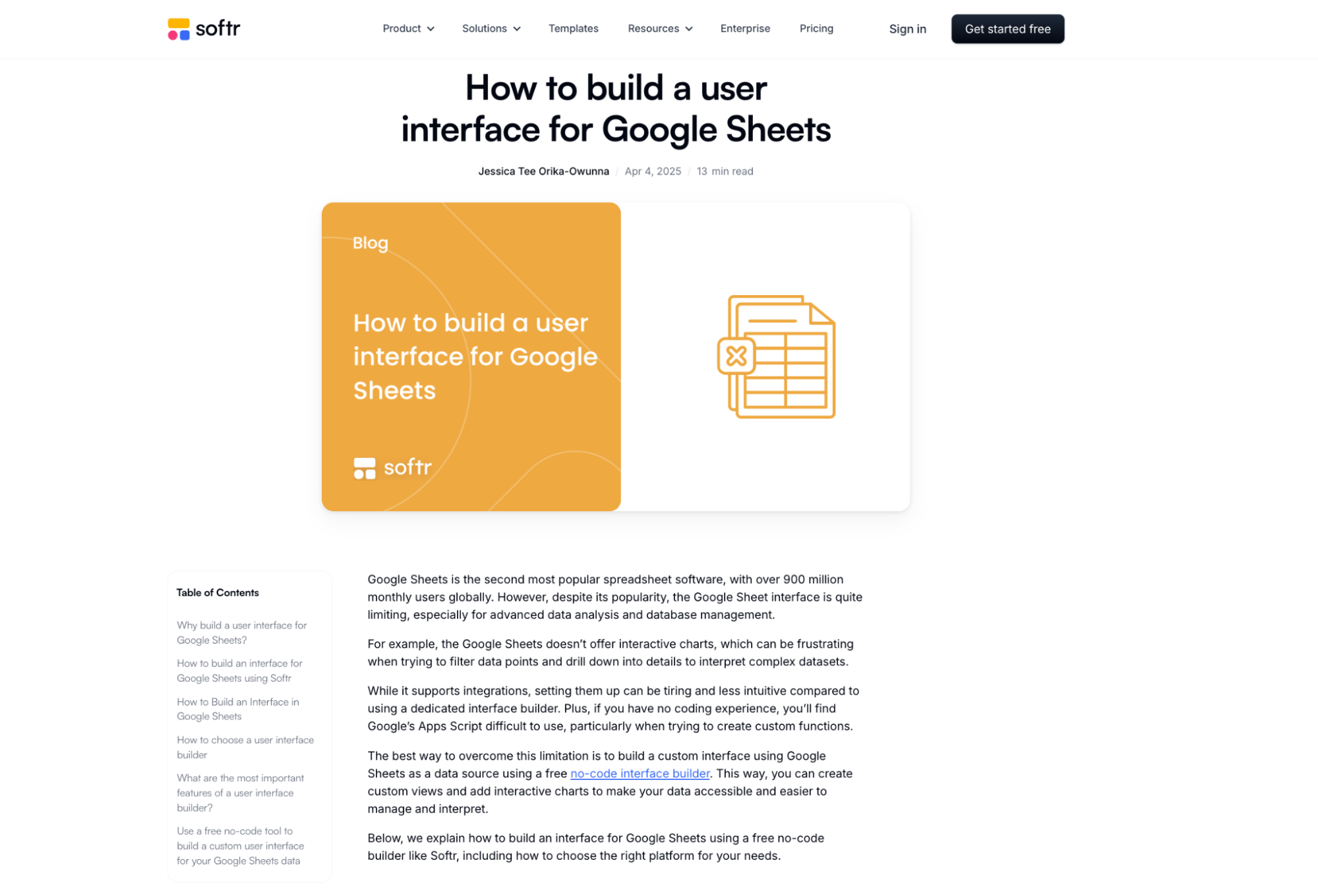 For example, I wrote a tutorial for Softr showing users how to build a custom interface for Google Sheets using the no-code software.