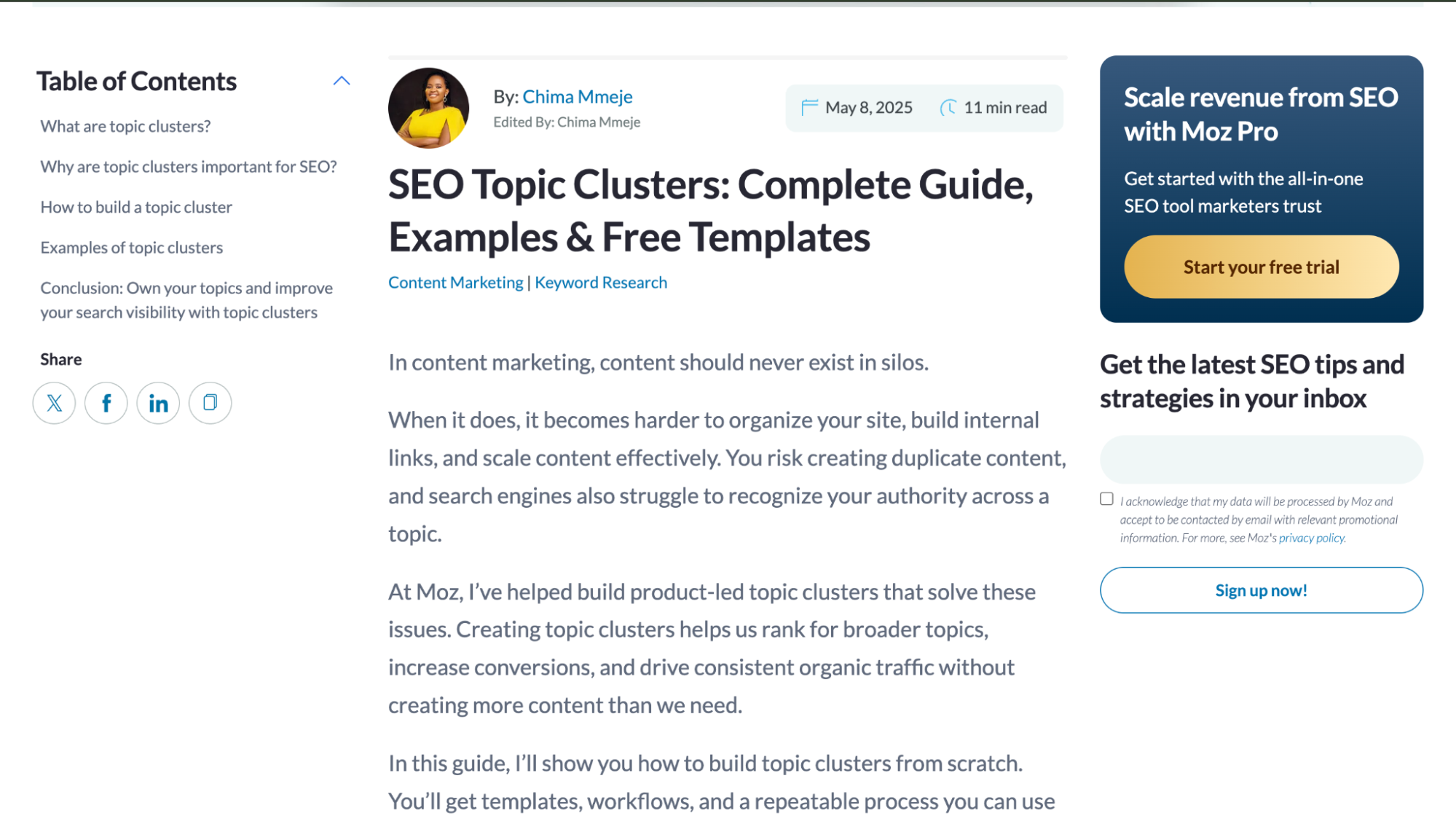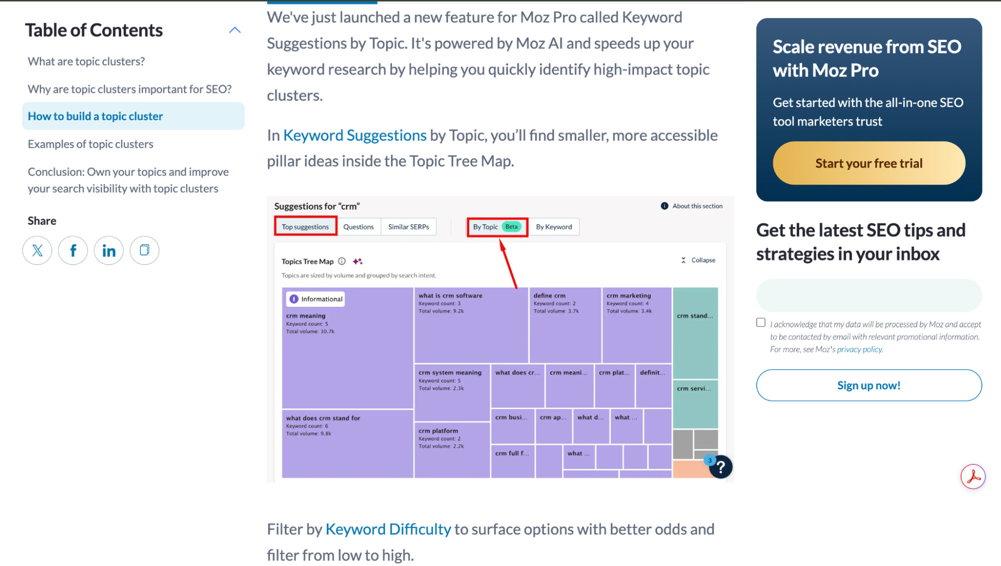 For example, when Moz launched “Keyword Suggestions by Topic,” Chima Mmeje wrote a detailed article on building topic clusters to explain how the feature worked.