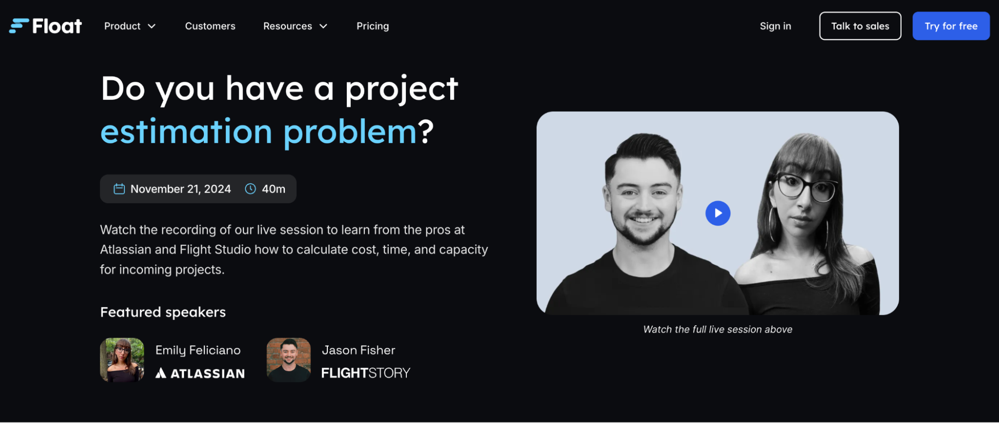 One example is their webinar on project estimation with Atlassian and FlightStory Studio. The guests shared practical strategies and templates for improving estimates and explained how Float supports that process.