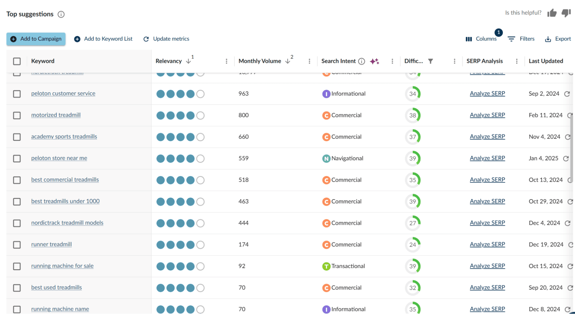 For example, a fitness equipment business targeting "treadmills" faces immense competition from retail giants and review websites. A more thoughtful approach is to focus on narrower, less competitive terms like "best treadmills under 1000." You can bypass competitors' dominating head terms and capture relevant, high-intent traffic by honing in on specific use cases.