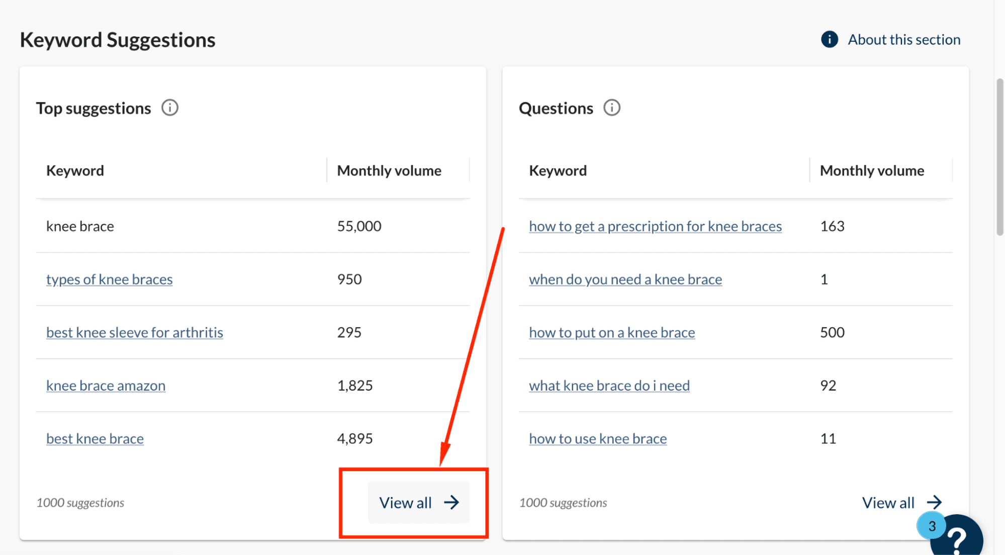 Scroll down and select View all under Keyword Suggestions.