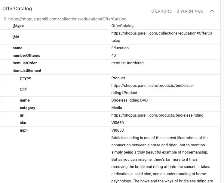 Shopify sites might also benefit from expanding the Product structured data to collections pages as well. You can actually use “CollectionPage” or “OfferCatalog” schema to tell search engines that your category page contains multiple products. This involves marking up category page elements such as individual product names, URLs, prices and more.