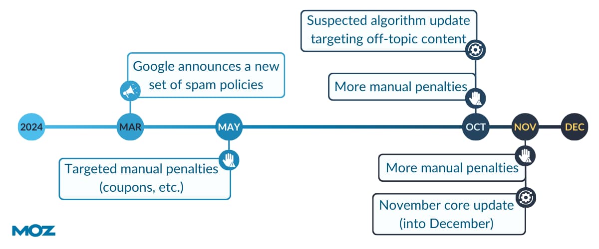 - OCT 2024 — Algorithm update targeting off-topic content (?)