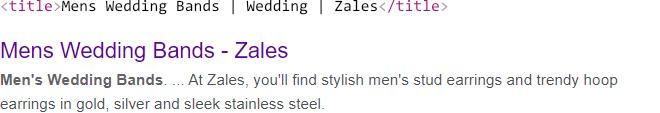 In some of these cases, the original <title> tags simply appear to be reflecting the site’s information architecture. Take this example from Zales: