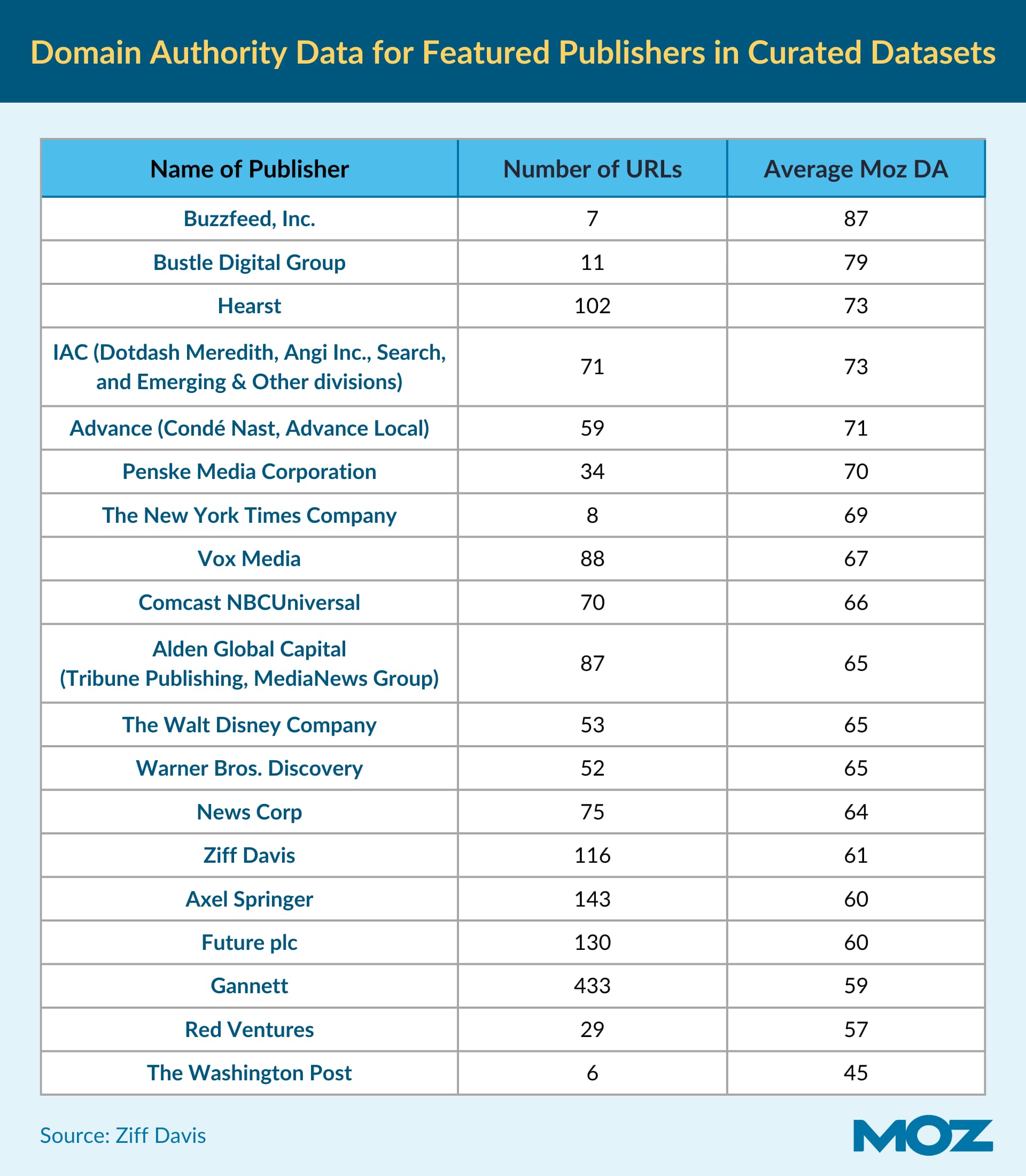While Moz’s Domain Authority (DA) isn’t a ranking factor, the Ziff Davis study confirms it’s a strong directional indicator of site authority, which aligns with the high-quality sources favored in LLM training.