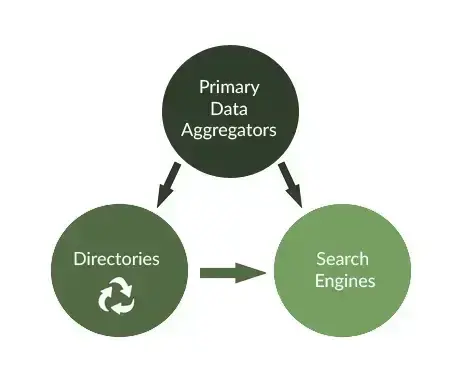 The phrase “local search ecosystem” is used to describe the existence of multiple websites, directories, platforms, and apps that list, distribute and share information about local businesses. The type of business, identified by its business category, plays a crucial role in how local searches operate and connect users with relevant services or products. As illustrated above, large databases known as “primary data aggregators” can make the information they have available to online directories and search engines, and directories can also play this role.