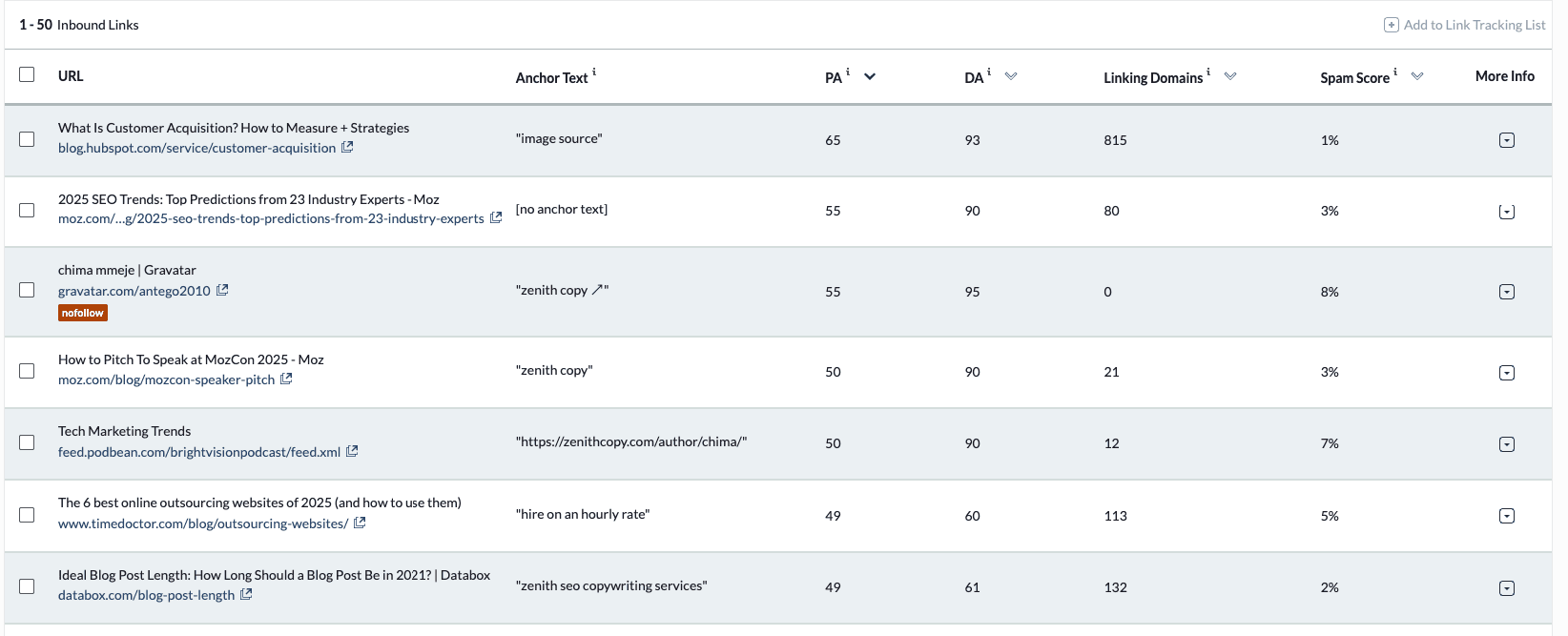 - Analyze Page Authority and Domain Authority of linking domains