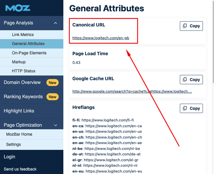 In most browsers, you can right-click to view-source, or simply type it into the address bar, like this: view-source:https://a-moz.groupbuyseo.org/learn/seo/cano... the source code, search for canonical tag in the <head>. If present, it should look like this: