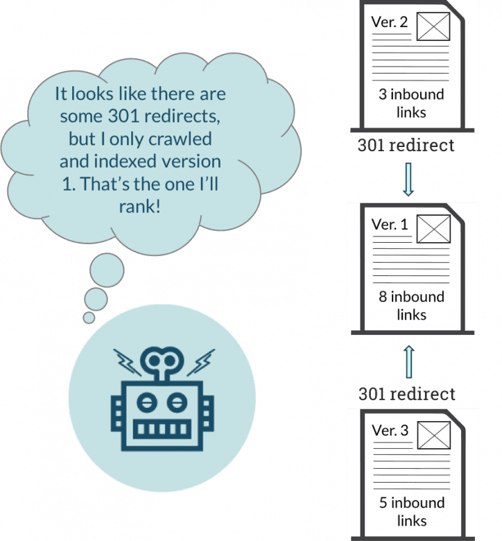 - They don’t know whether to direct the link metrics (trust, authority, link equity, etc.) to one page, or keep it separated between multiple versions.