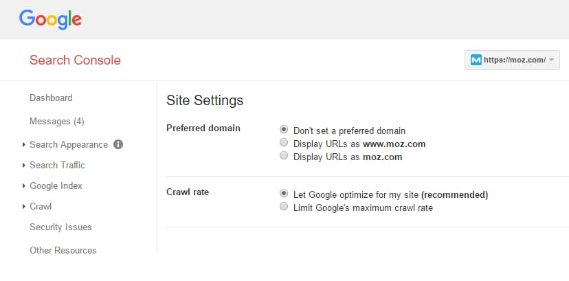 Google Search Console allows you to set the preferred domain of your site (i.e. http://yoursite.com instead of http://www.yoursite.com) and specify whether Googlebot should crawl various URL parameters differently (parameter handling).