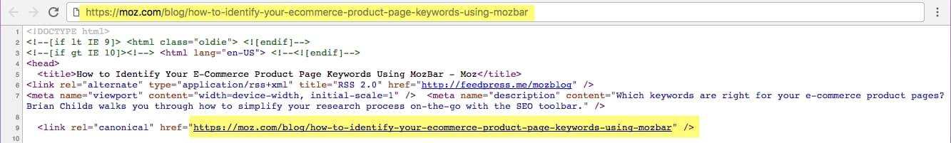 The rel="canonical" attribute is part of the HTML head of a web page and looks like this: