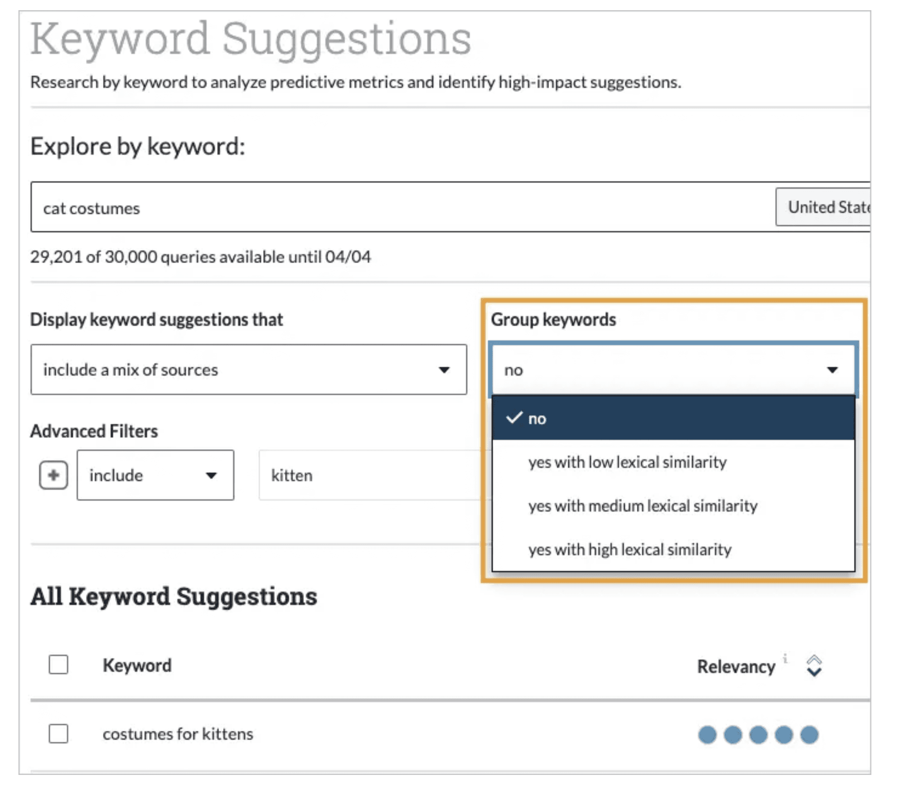 Additionally, Moz Pro includes a helpful feature that helps you group keywords by low, medium, or high lexical similarity, making it easier to spot shared intent among a set of search phrases.