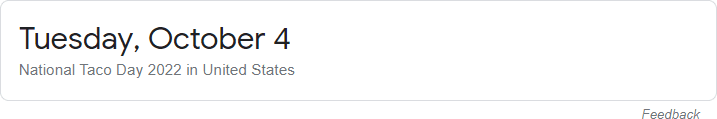 While it’s not much fun to think about, it’s important as a professional SEO to realize when you’re heading into territory that could be usurped by the Knowledge Graph. For example, there used to be an entire niche of sites devoted to providing the dates of notable events. Now, if I run a search like “When is National Taco Day?”, I’ll simply get a Knowledge Card: