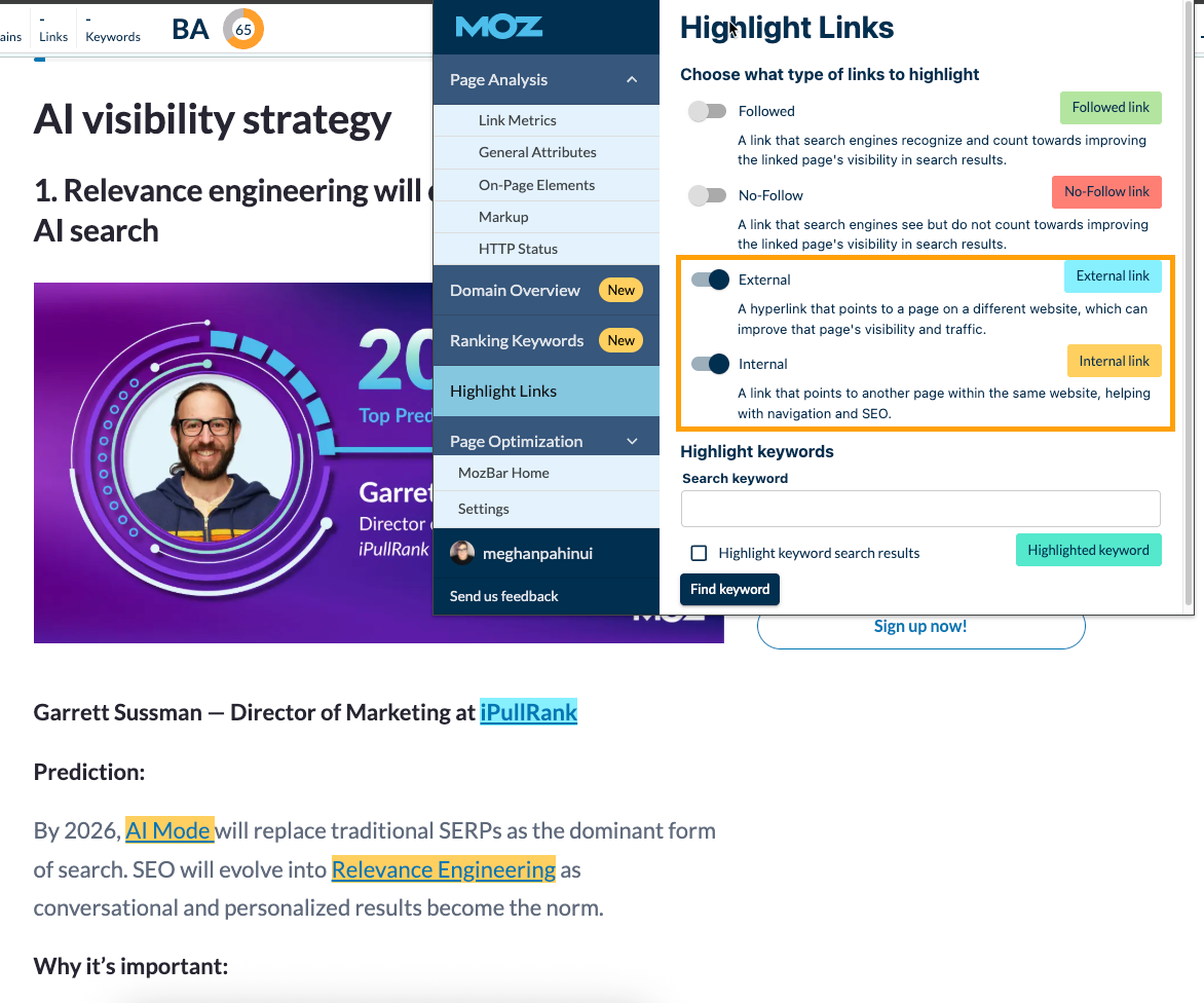While there are many techniques to find and audit backlinks, at a minimum you want to ensure your page has a mix of links from trusted external sources and internal pages with a variety of anchor text phrases that accurately describe your content.