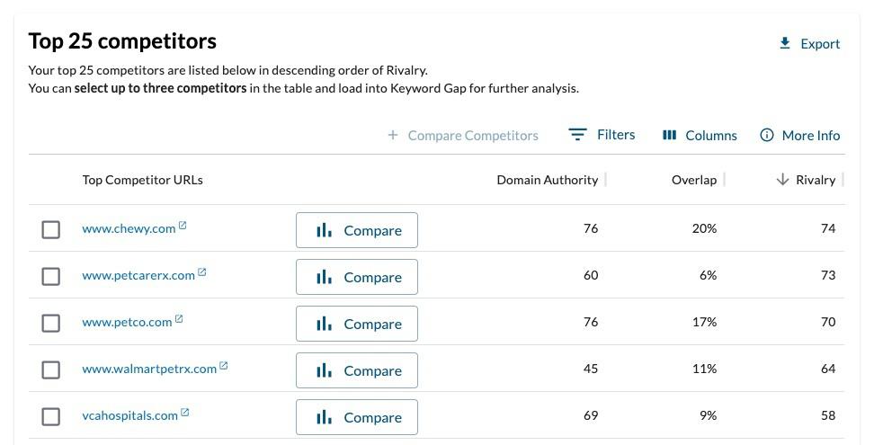 To make your life easier, various SEO tool solutions can automatically look at all of the keywords you rank for in their databases, and accurately tell you who your true search competitors are.